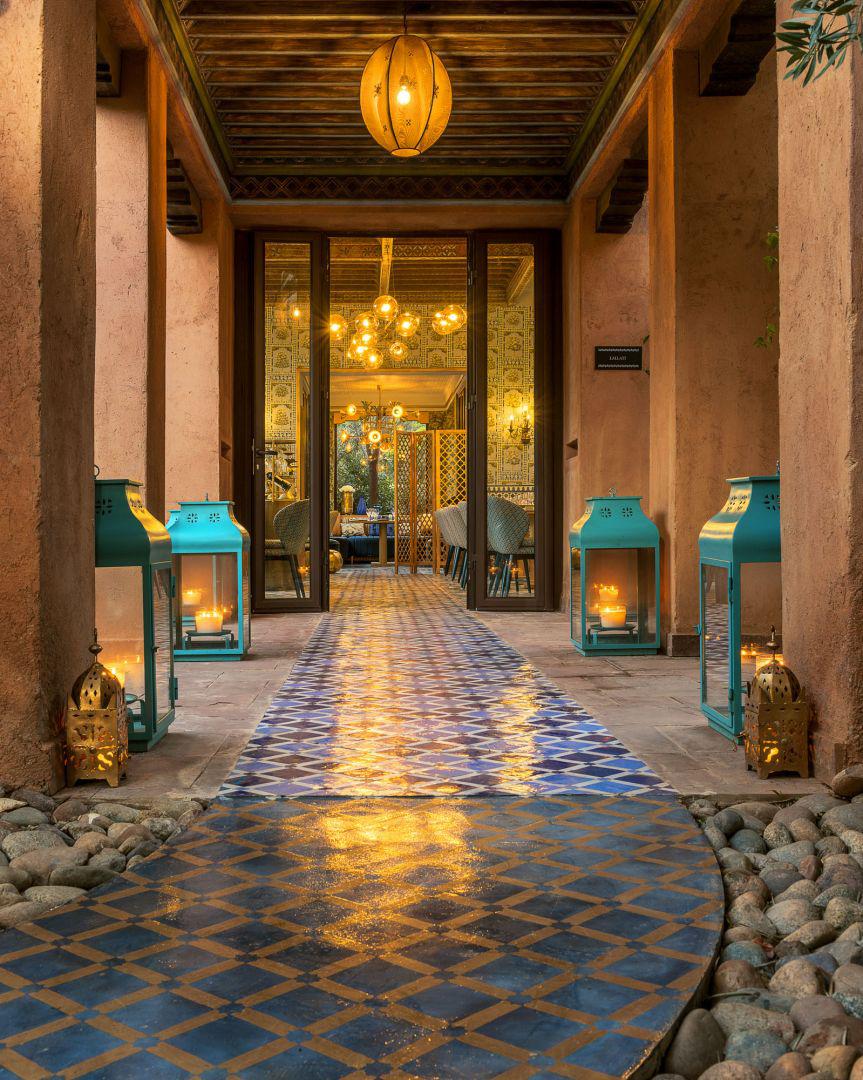 Suivez le chemin dérobé, à l’abri des regards indiscrets, rejoignez le restaurant Lallati de notre hôtel 5 étoiles à Marrakech, Le Tigmiza. Un cadre surprenant et inattendu, où trône un plafond berbère des plus anciens, bordé d’un jardin luxuriant, empreint d’exotisme.