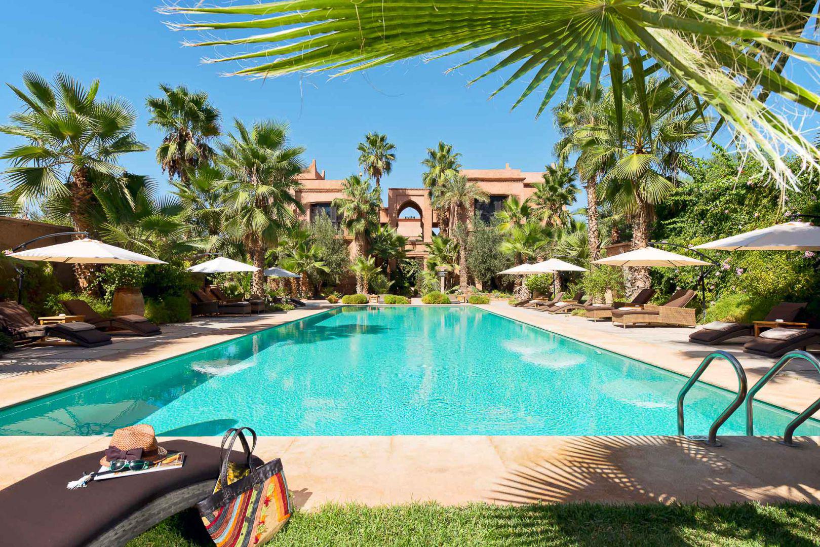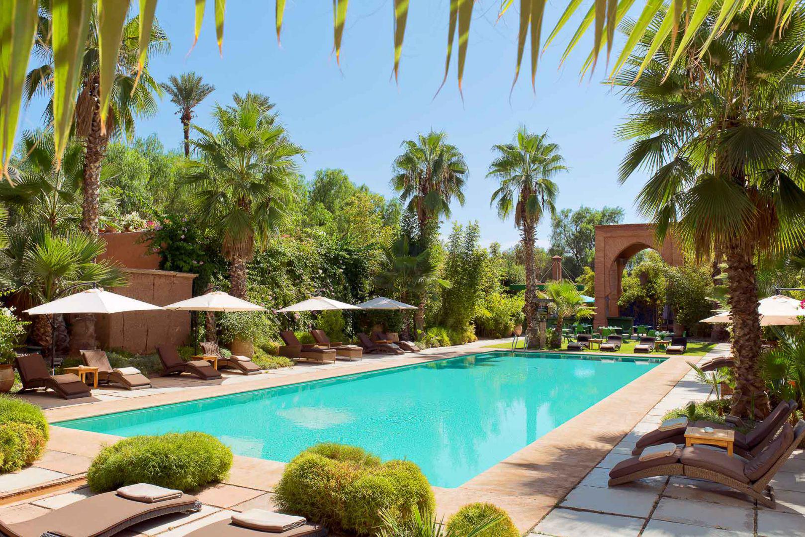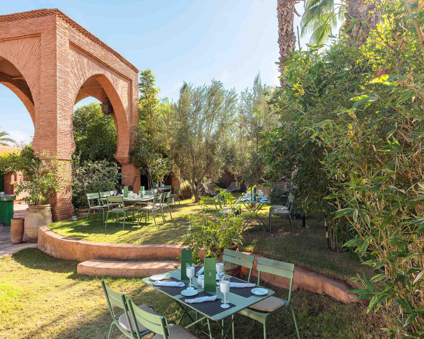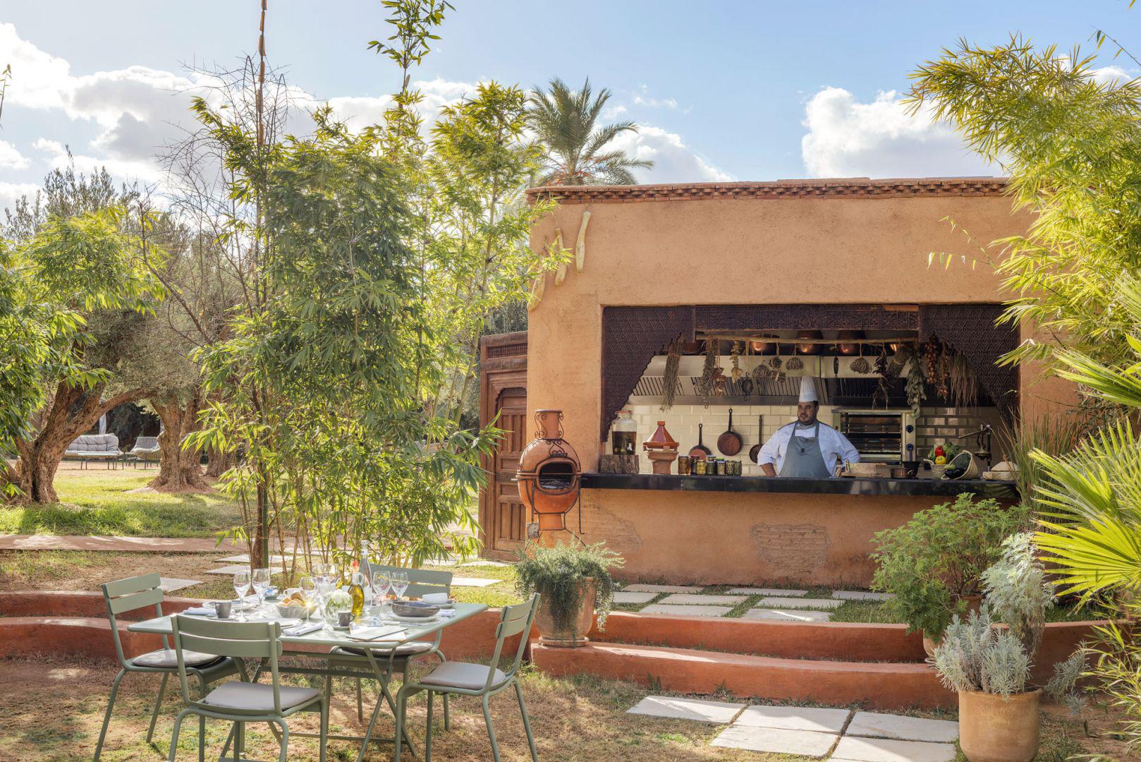 Profitez du calme d’un hôtel avec piscine à Marrakech, à l’abri de la ville dans la Palmeraie, pour déguster une belle sélection de grillades accompagnées de légumes fraîchement cueillis du potager.